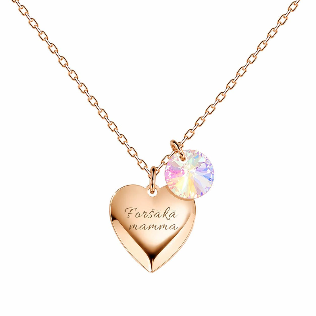 zelta atverama sirds kaklarota ar personalizētu gravējumu ar kristālu